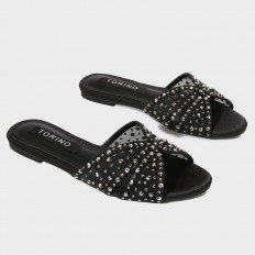 ZX2820 نعال مسطح بجزء من التول مزين بالستراس - Torino