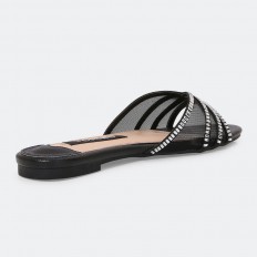 ZX2969 نعال مسطح بجزء من التول مزين بالستراس - Torino
