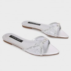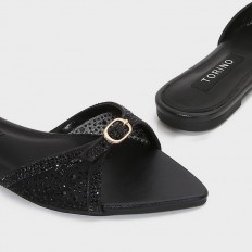 تألقي مع هذا النعال المسطح من تورينو، تصميم أنيق بجزء من التول المزين بالستراس, متوفر بألوان لا غنى عنها