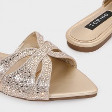 نقدم لكِ هذا النعال من تورينو , تصميم أنيق مزين بالستراس , سهل الإرتداء ومتوفر بألوان لا غنى عنها