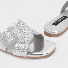 ZX3172 نعال مسطح ذو مقدمة مرصعة بالستراس