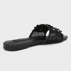نقدم لكِ هذا النعال من تورينو، ذو تصميم مميز مزين بورود من التول المرصعة بالستراس, متوفر بألوان يمكن تنسيقها مع إطلالات مختلفة