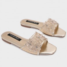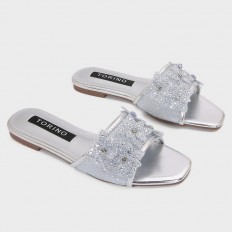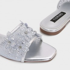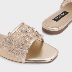 ZX3187 نعال مسطح مزين بورود من التول المرصعة بالستراس - Torino