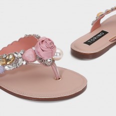 نعال مسطح ذو اصبع مزين بالأحجار الملونة و الورود لإطلالة أنيقة، كما أنه خيار مريح وعملي وملائم لجميع احتياجاتك.