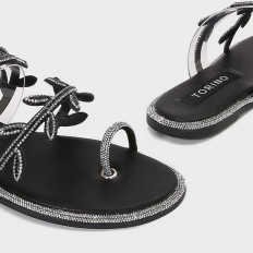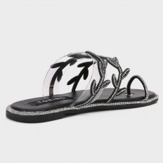 لا غنى عن هذا النعال ضمن تشكيلة أحذيتك، مقدمة مستديرة مزودة بحلقة إصبع مع حبال من الكريستال بتنسيق ورق الشجر، مناسب لكافة الأوقات