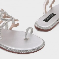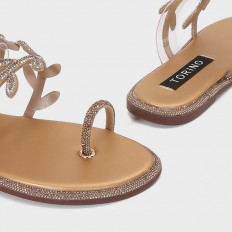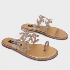 ZX3193 نعال مسطح من حبال الكريستال بتنسيق ورق الشجر - Torino