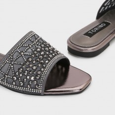 ZX3250 نعال مسطح بخامة من التول المرصع بالستراس - Torino