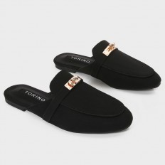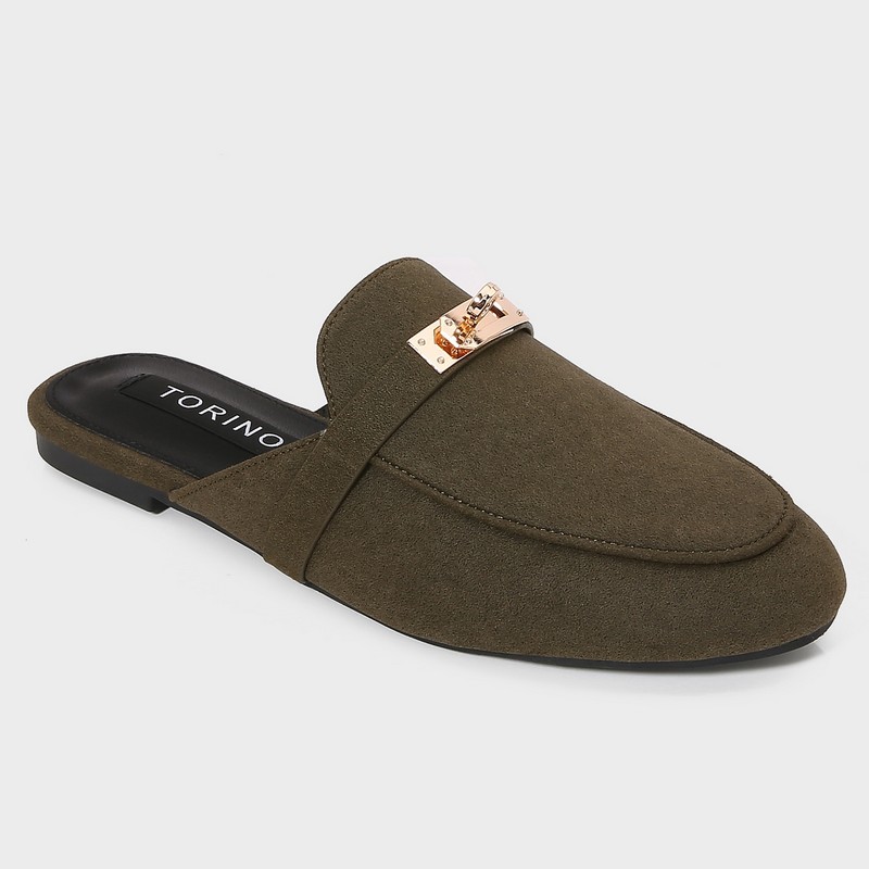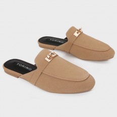 نعال مسطح من تورينو بتصميمه الأنيق وكلاسيكي بخامة من الشامواه، ذو مقدمة مغلقة مزين باكسسوار، مناسب للإستخدام اليومي