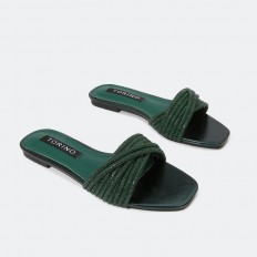 اجعلي بريق اطلالتك لاحدود له بنعال فلات بتصميم جذاب مزين بحبال الكريستا ,مريح وسهل الإرتداء