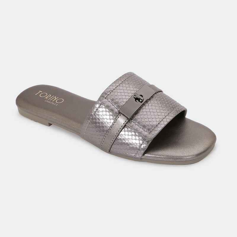 نعال مسطح ذو تصميم عصري من تورينو, ذو خامة مميزة من جلد الأفعى وألوان أساسية، مناسب للإستخدام اليومي