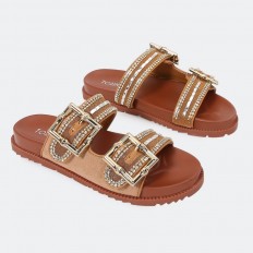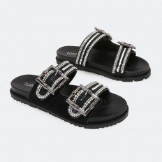 لراحة طوال اليوم نقدم لكِ هذا النعال من تورينو , تصميم عصري بحزامين ومزين بالستراس , مناسب للإستخدام اليومي
