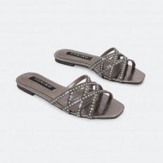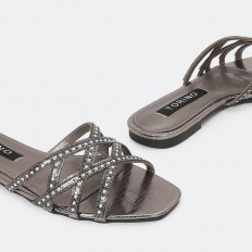 ZX2701 نعال مسطح بتصميم شرائط مرصعة بالستراس - Torino