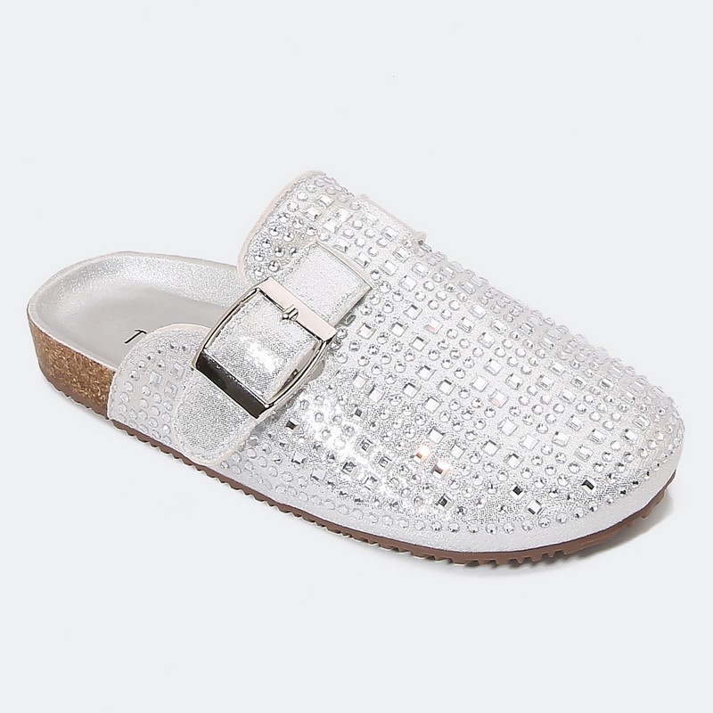 GML876 نعال مسطح بناتي ذو مقدمة مغلقة مرصعة بالستراس البراق