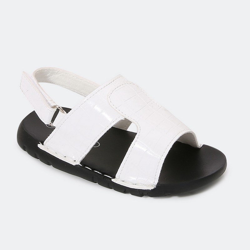 Torino sandal with its elegant and classic design made of luxurious leather with a distinctive pattern and an ankle strap with a reinforced buckle at the bottom. Choose the best one for your child.
