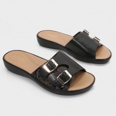 Pamper yourself with Torino faux leather slippers with snakeskin side panel, designed to suit all your needs and comfort