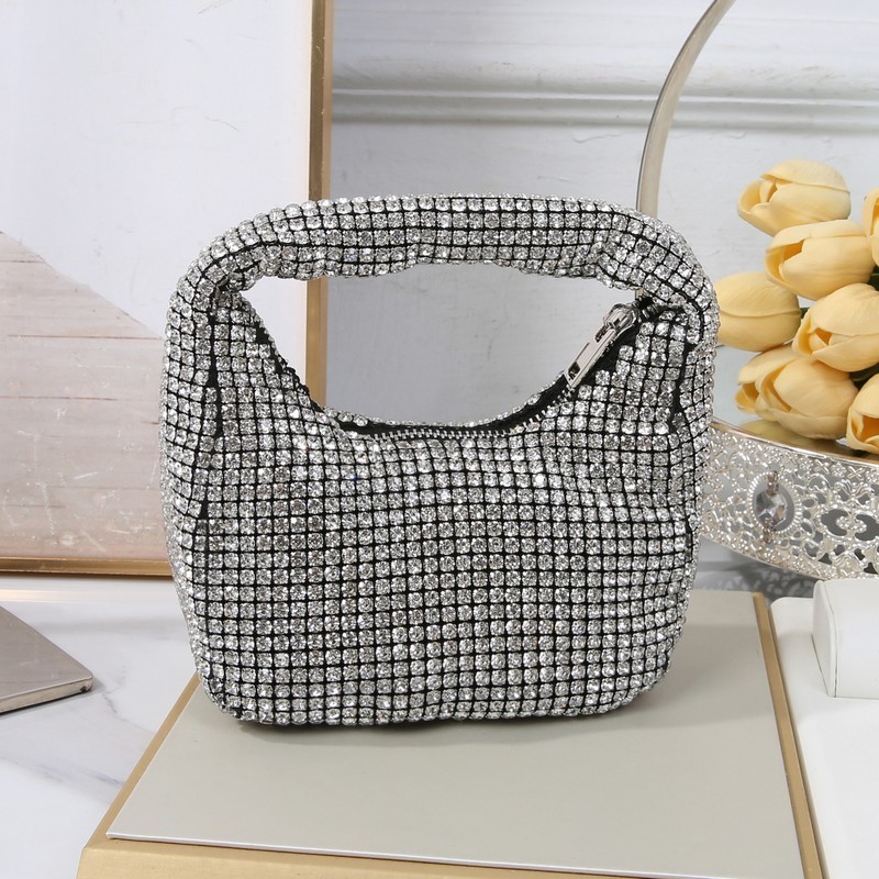 Shine with this crystal-studded evening bag from Torino, available in colors that can be coordinated with different looks, zipper closure, suitable for parties