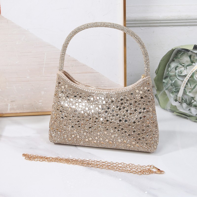 You can't do without this sparkling handbag in your closet; it has an elegant design adorned with shiny stones and comes with a chain, perfect for parties.