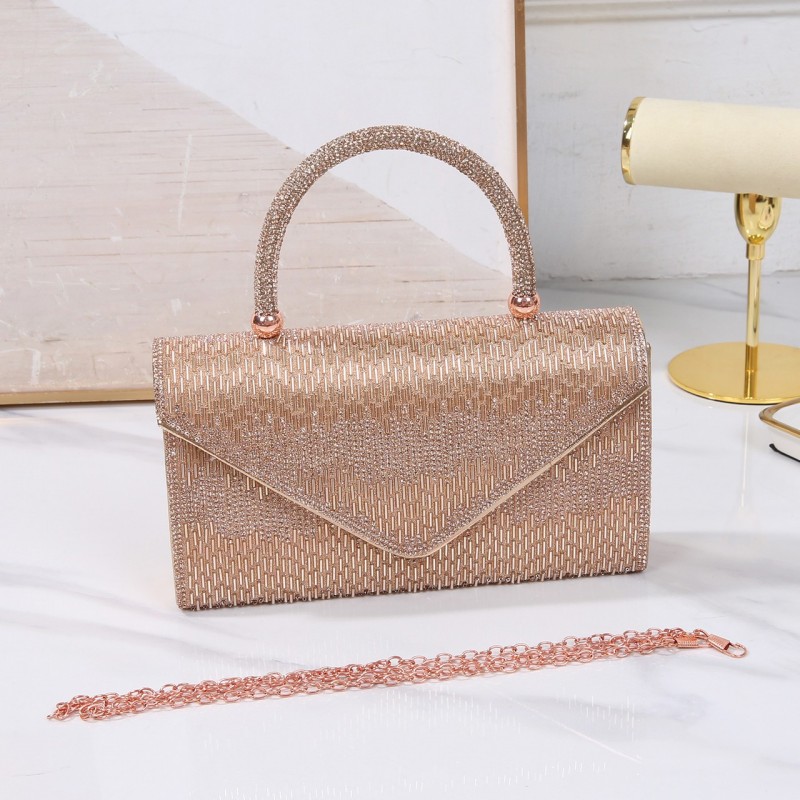 Get a touch of magic with the elegant evening bag feaTorinog its sophisticated colors and beautifully adorned with rhinestones, complemented by a crystal-studded handle, making it perfect for your evening looks.