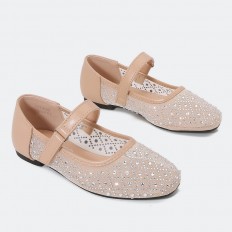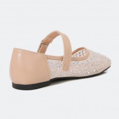 Introducing these shoes from Turin, with a round toe in tulle studded with strass, with a hook-up front buckle closure, buy them for your little one's look