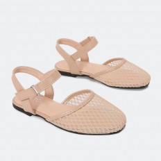 These sandals are the perfect choice for your little one's look, elegant design with a closed round tulle fabric, with a hook-up front buckle, available in indispensable colors