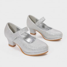 GML813 Girls Metallic Lame Wide Heel Shoes