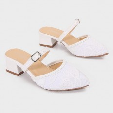 Let your little girl shine with this 2 cm wide-heeled slippers, feaTorinog a luxurious design with embroidered tulle, suitable for all occasions.