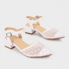 3 cm heel sandals with a rounded toe, made of tulle with an elegant design, feaTorinog a front buckle for closure, can be paired with different looks, choose it for your child's outfit.