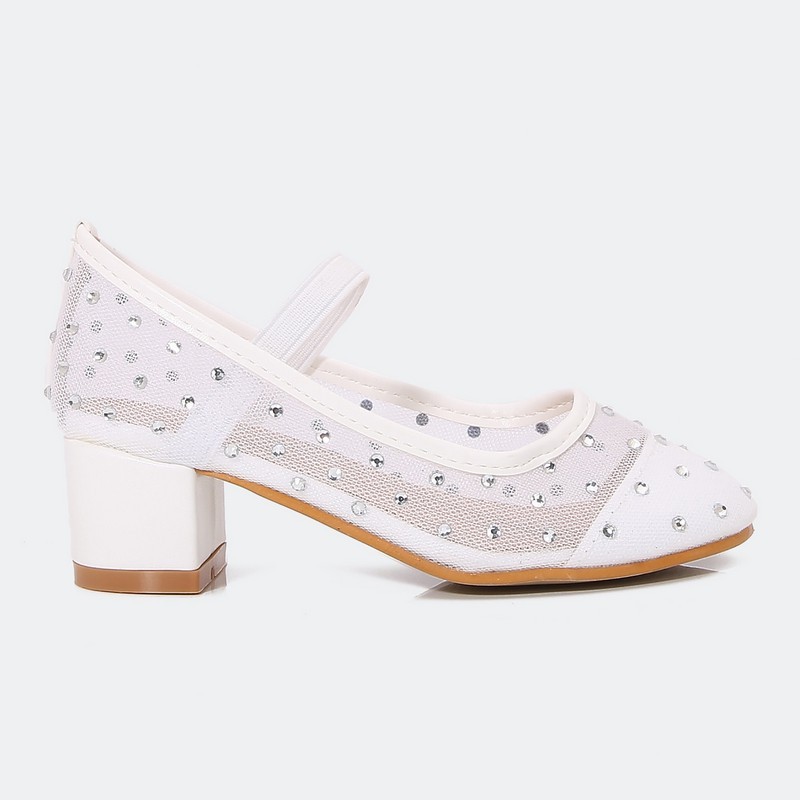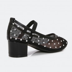 Introducing these shoes from Turin, with a 5cm heel and a round toe in lightning tulle, with a front buckle, available in indispensable colors, for a charming look for your little one