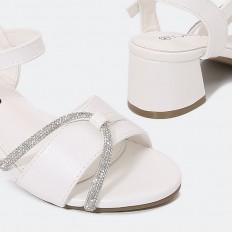 Girls sandals designed from Torino for lovers of elegance and luxury in shiny leather decorated with a rope of shiny crystal and a belt with buckle and heels 5 cm Order it to make your child's look charming like princesses