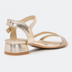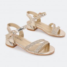 We offer to you girls sandals with a small heel and a stylish design made of faux leather . Ankle strap and buckle for closure
