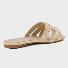 Easy-to-wear trendy and elegant comfortable slippers with a distinctive design studded with bright and shiny strass for a feminine look that has no limits to its charm