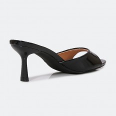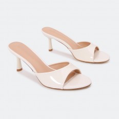 With a sleek and practical design, these slippers are a great choice for your everyday look, with 7 cm heels, made of shiny faux leather with a round toe