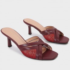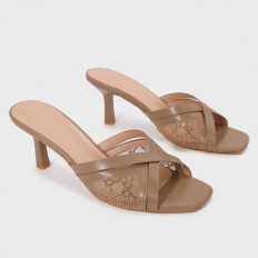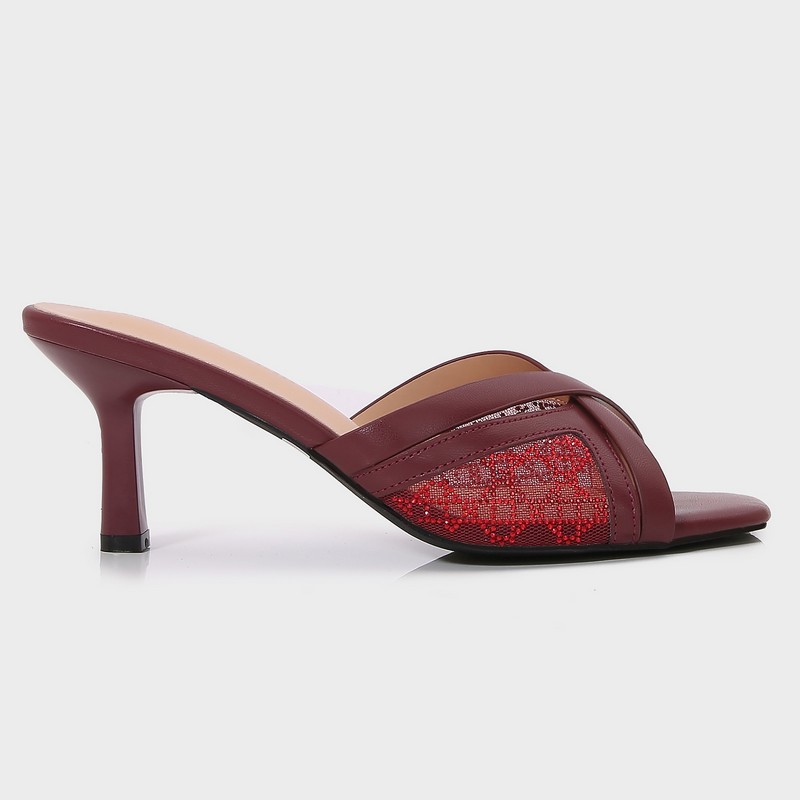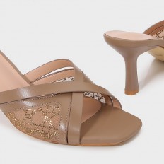 BXQ2124 Heeled slippers with a tulle part adorned withstrass