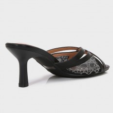BXQ2124 Heeled slippers with a tulle part adorned withstrass - Torino