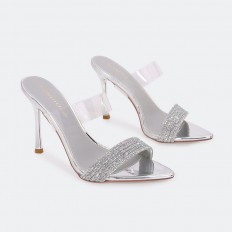 With an elegant design, we present to you these slippers feaTorinog a shiny 9 cm heel, a pointed front adorned with crystals, and a transparent section, which can be styled with different looks.