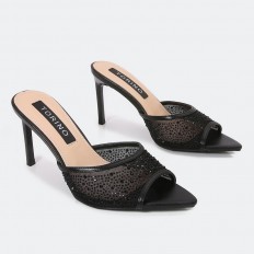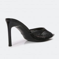 Shine with these Turin slippers, with a shiny 9cm heel and a pointed toe in tulle studded with strass, available in classic colors, can be styled with different options