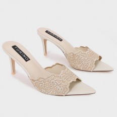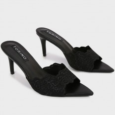 This slipper is an ideal choice for your everyday look, feaTorinog an elegant design with a distinctive lace material, a 7 cm heel, and a pointed open toe, which can be coordinated with various options.