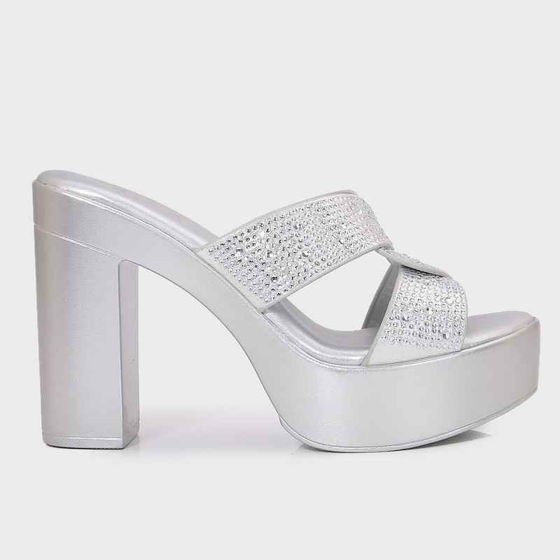 With an elegant design, we present to you this 9 cm heel, feaTorinog a rounded toe shaped by interwoven cords adorned with shiny strass, and a comfortable sole.