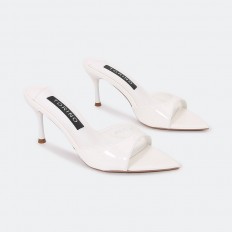 QXQ1522 Shiny leather heel slippers with pointed toe