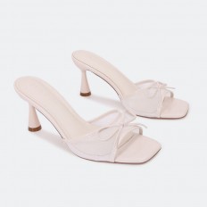 With its elegant design, this slipper is a great choice for your daily look, feaTorinog a 7 cm heel and an upper part made of tulle adorned with a bow, available in colors that can be coordinated with different options.