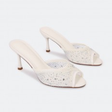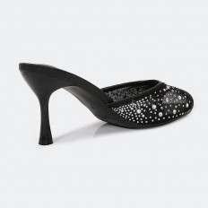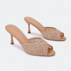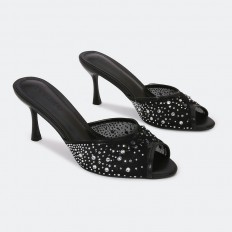 QXQ1960 Heel slippers made of tulle adorned with strass.