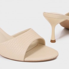These slippers are suitable for your daily look, featuring a slim 5 cm heel and a rounded toe made of synthetic leather, and can be styled with various options.