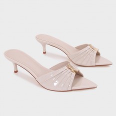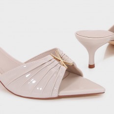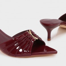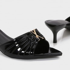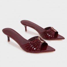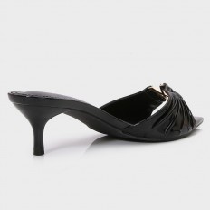We present to you these slippers from Torino, with a 4 cm heel, featuring a distinctive shiny design adorned with an X-shaped accessory, comfortable and suitable for daily use.
