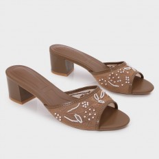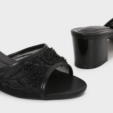 QXQ2165 Heeled slippers with a toe made of embroidered tulle