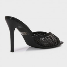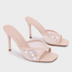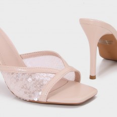 Shine with these Torino slippers, featuring a slim 10 cm heel and a square toe made of tulle adorned with sequins, they can be styled in various ways.