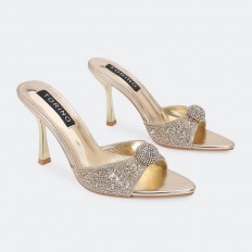 These slippers are a must-have in your shoe collection. They have a 9cm heel, are elegant and shiny, and are decorated with strass with a soft, shiny accessory. They are available in essential colors.