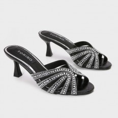 Shine with these Torino slipper feaTorinog a 7 cm heel and a chic design adorned with strass available in colors that can be matched with different looks.