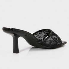 Shine with this 5cm heeled slippers from Torino, feaTorinog a luxurious design with a tulle part adorned with sparkling strass suitable for all occasions.