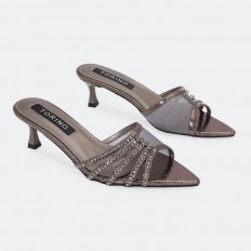 We present to you this slipper from Torino, with a 4 cm heel, a luxurious design with a pointed toe and a tulle part, suitable for all occasions.
