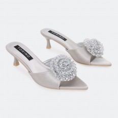 ZXQ2011 Heeled slippers adorned with a rhinestone-studded flower - Torino